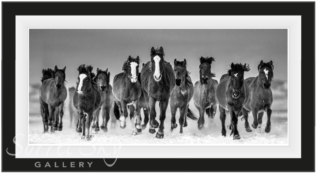 This is a special image for me; in part because it is such a low percentage capture and in part because its dynamism extols the wild nature of mustang horses. The premise was always to have a group of Mustangs running wild towards me in the winter snow, but I knew the chances of truly pulling it off were very low.