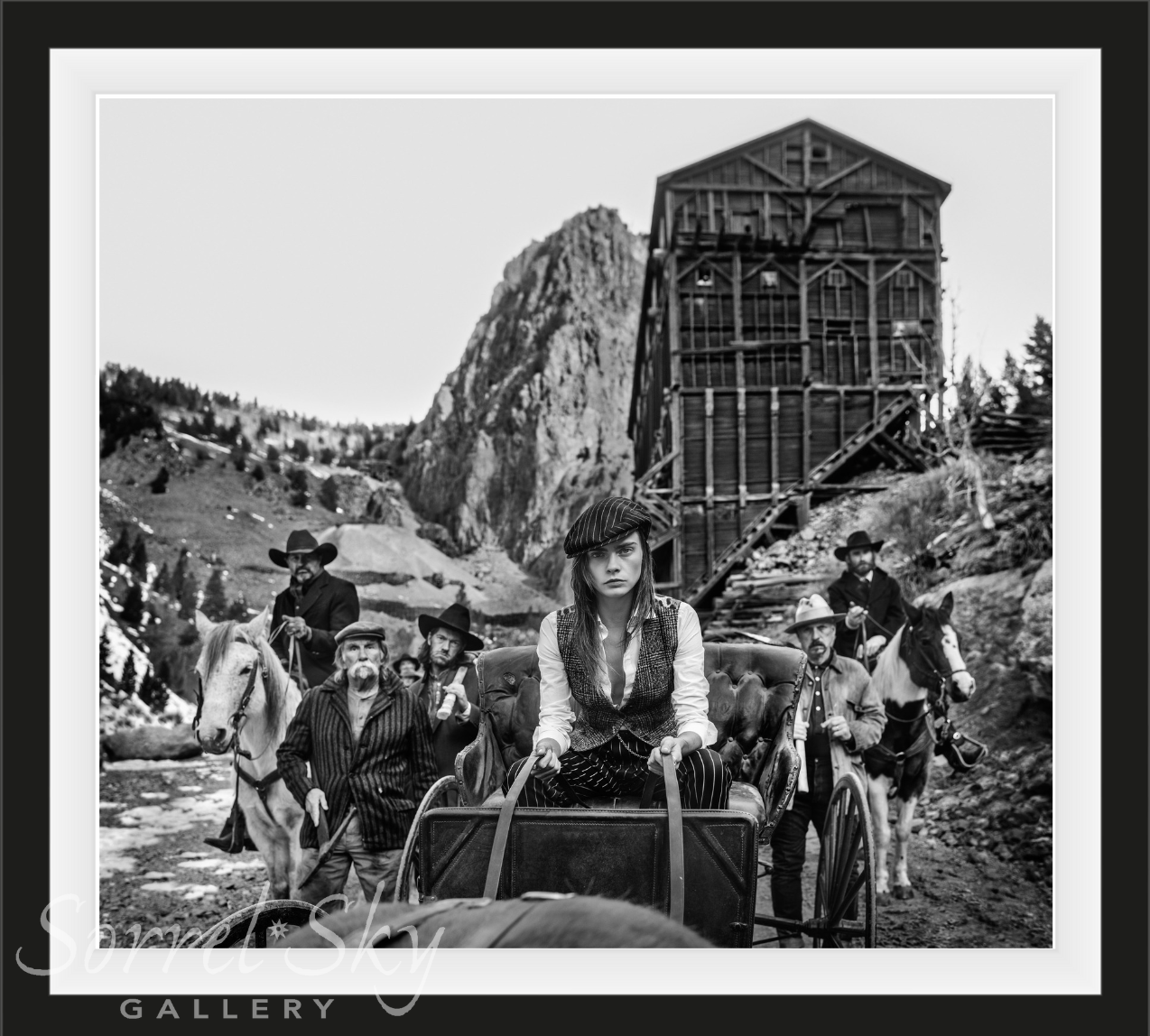This abandoned silver mine, 11,000 feet up a gorge near the town of Creede in Colorado, grabbed my attention as soon as I set eyes on the location. It played to the layered narratives that I often employ, with the towering mountain in the distance and the almost perfectly intact 1890 mine shaft in front. If I could configure a strong enough foreground, there was certainly a frame to be had. Mondrian taught us about the power of blending primary, secondary and tertiary and I felt it could be applied here. The idea was to style the shoot in sympathy with the peak of Creede’s mining production in 1893 when over 15,000 people lived in the area. With the help of the local theatre group and extras from all over the county, we managed to have 100 or so dressed miners on set at 6am one freezing March morning.